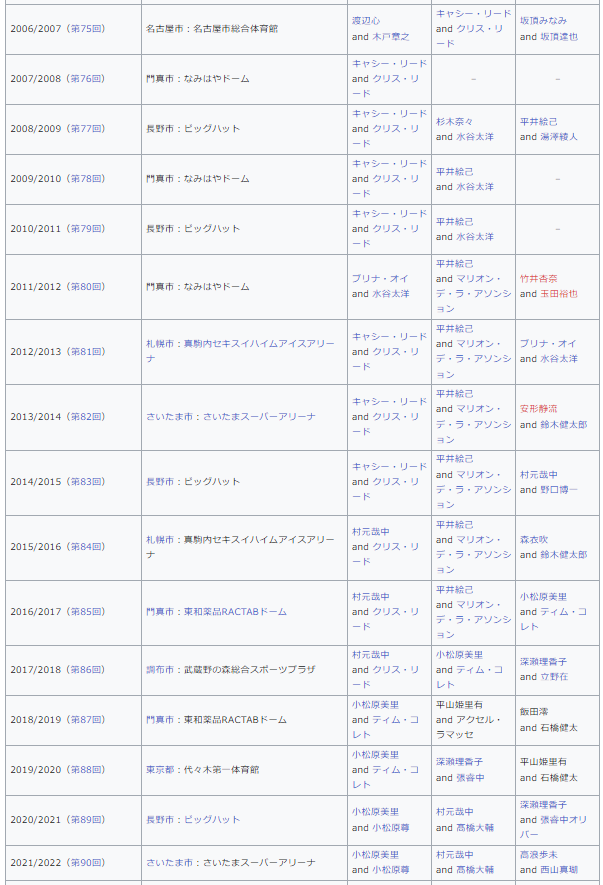 ※クリスリード村元哉中とも3連覇で計10連覇!!(キャッシーリード7連覇/村元哉中3連覇)